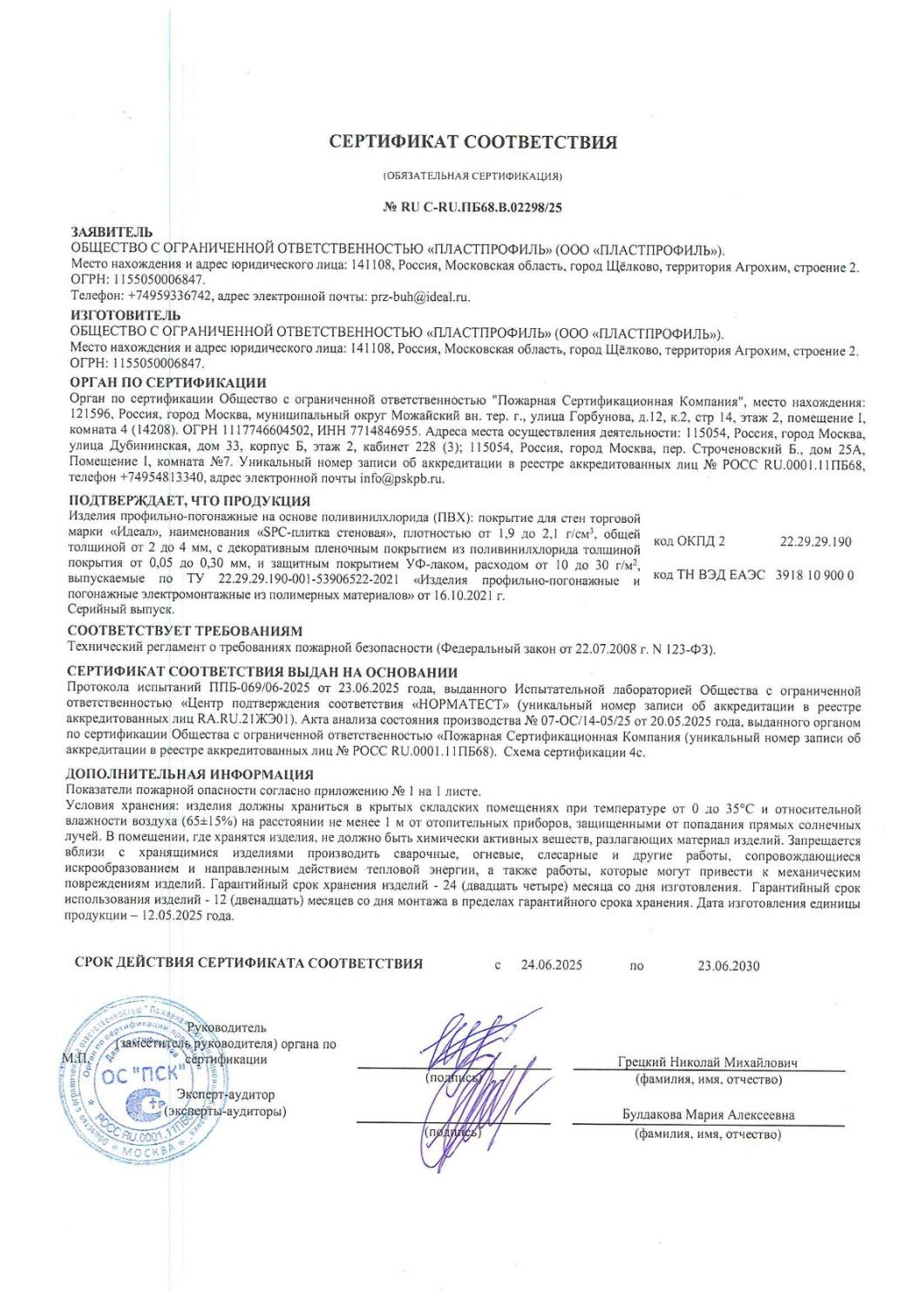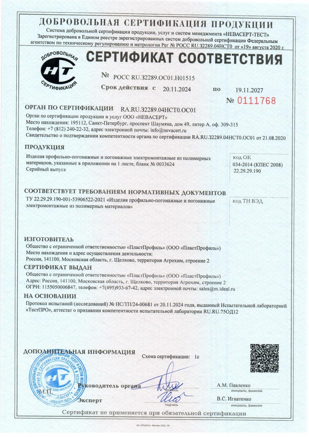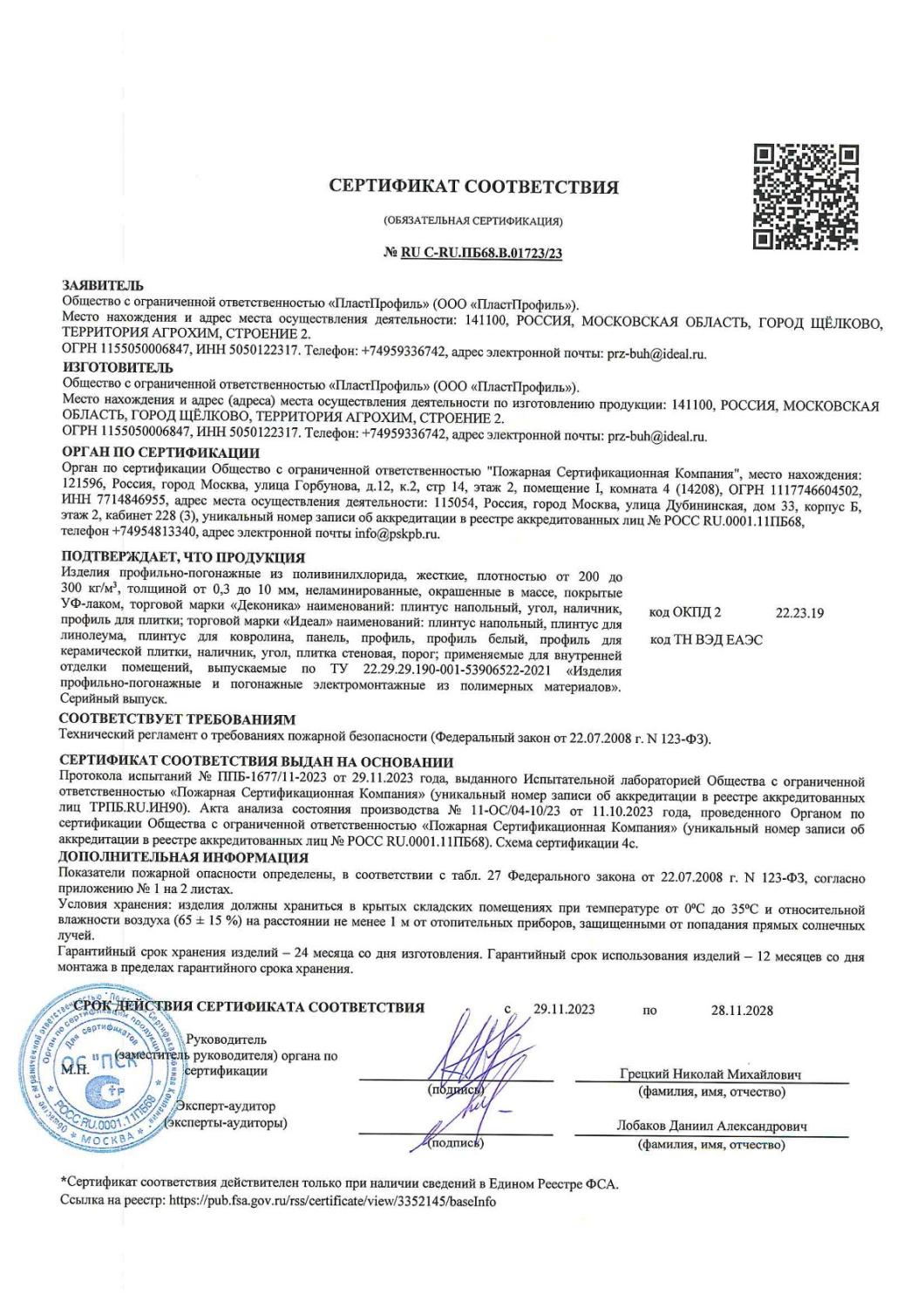Профильно-погонажная продукция Идеал. Сертификат соответствия 123-ФЗ от 22.07.2008