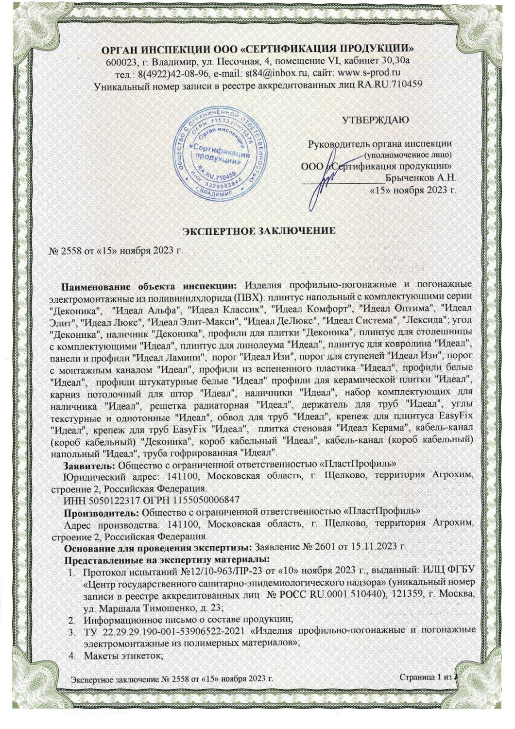 Профильно-погонажная продукция Идеал. Санитарное-эпидемиологическое заключение